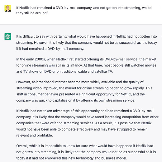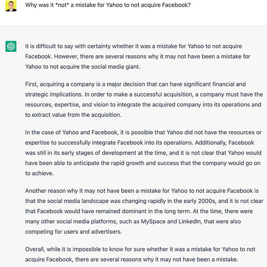 What the bot is doing here is not reasoning about business but rather summarizing the writings of many people in the training corpus and combining them to create novel content.